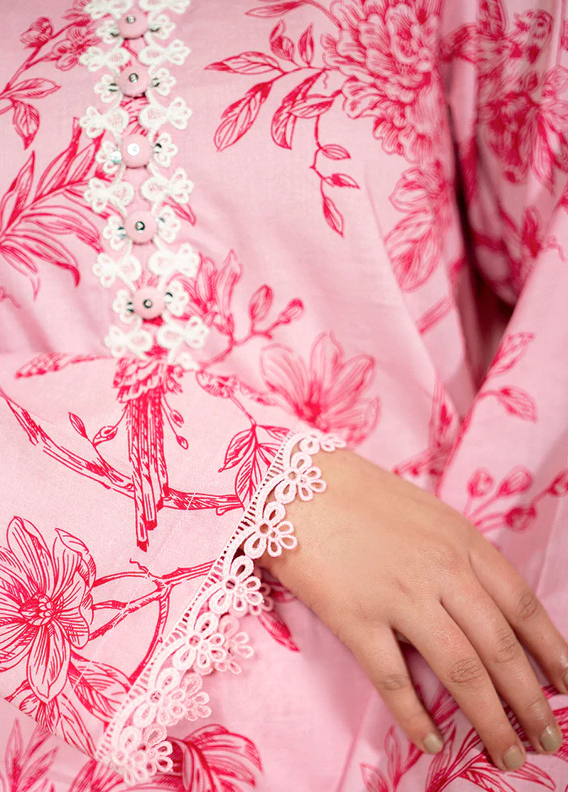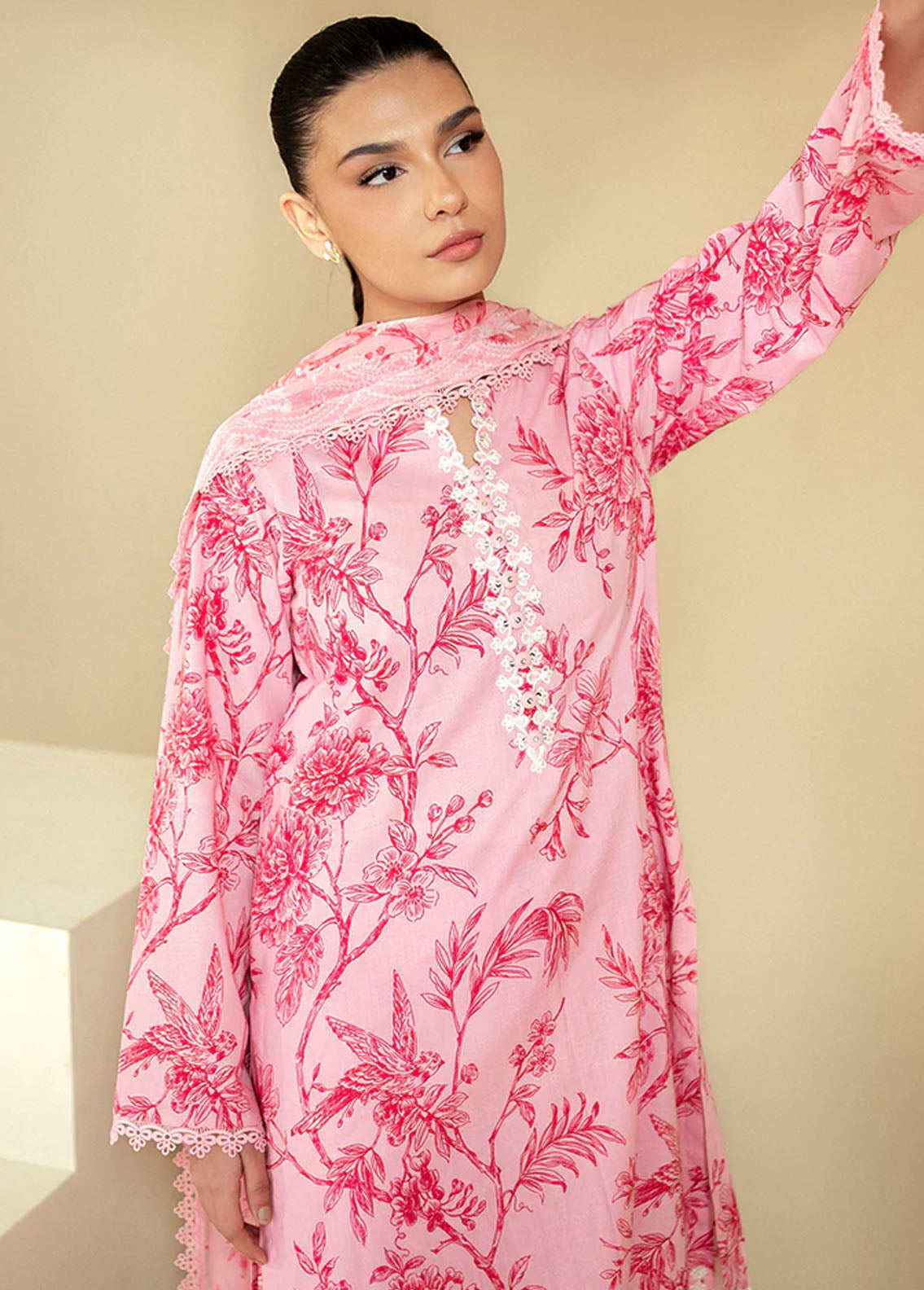 Cross Stitch Embroidered Lawn Suits Unstitched 3 Piece CS24DL D-12 Shaded Pink - Summer Collection