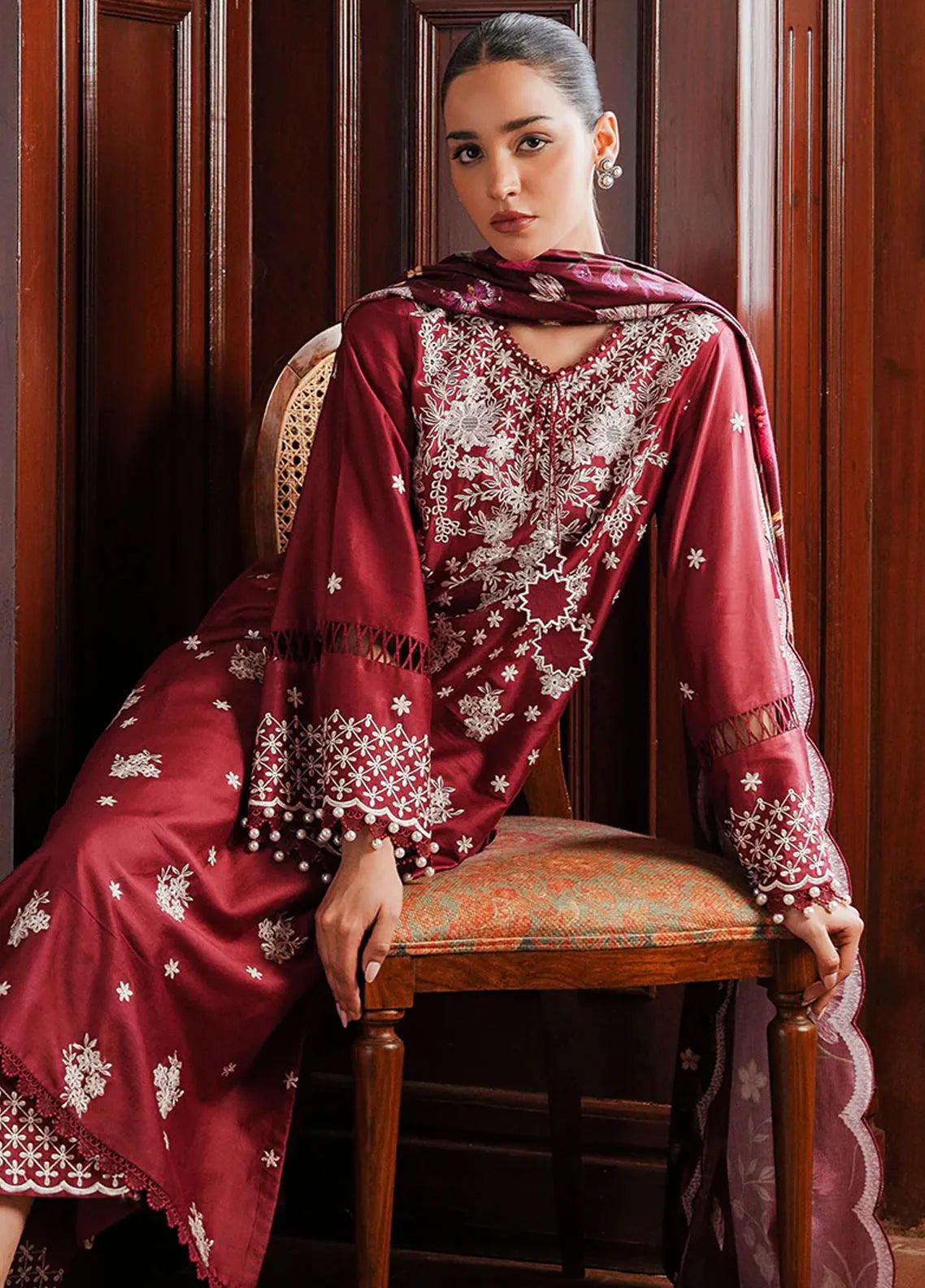 Cross Stitch Embroidered Satin Suit Unstitched 3 Piece CS24S Deep Berry - Luxury Collection