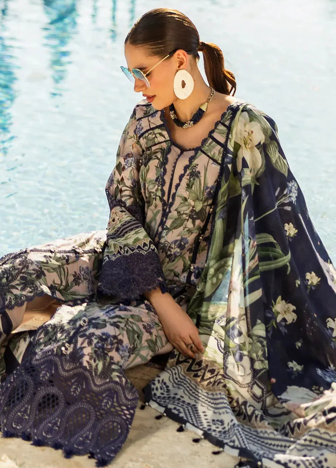 Elaf Chikankari Lawn Suits Unstitched 3 Piece EF25PC ELK-08B Azzurro - Summer Collection