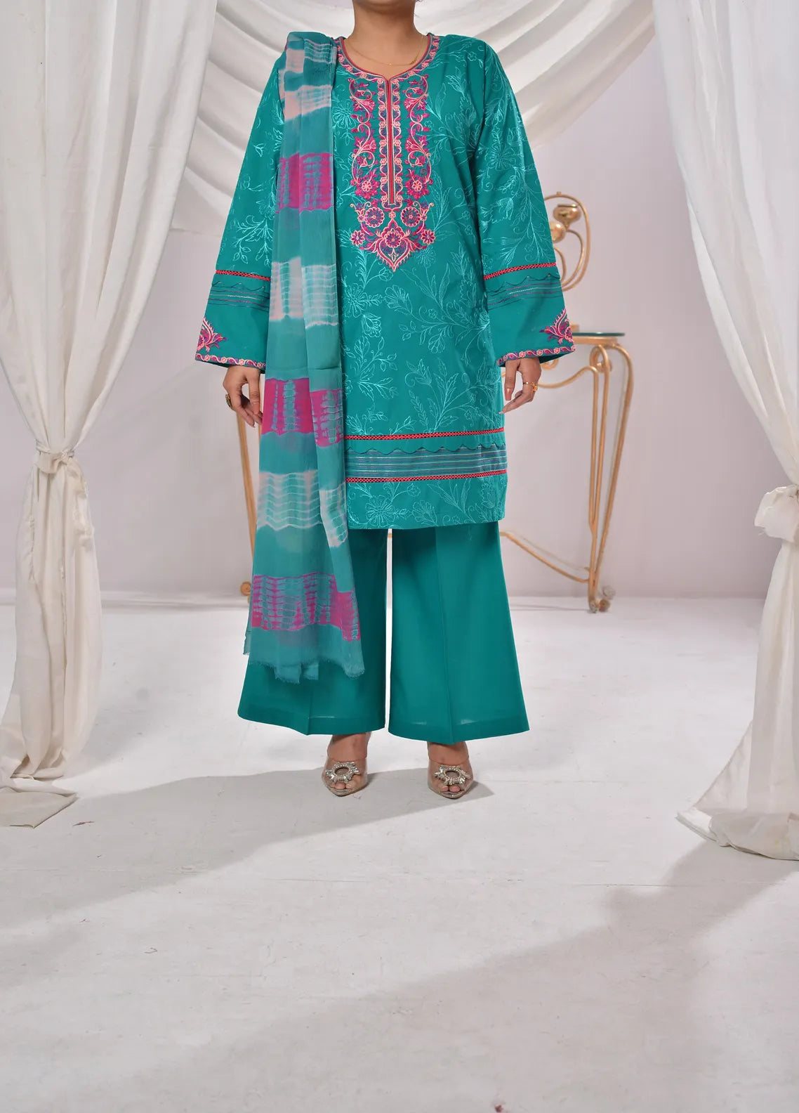 Embroidered Pret Cotton 3 Piece Suit
