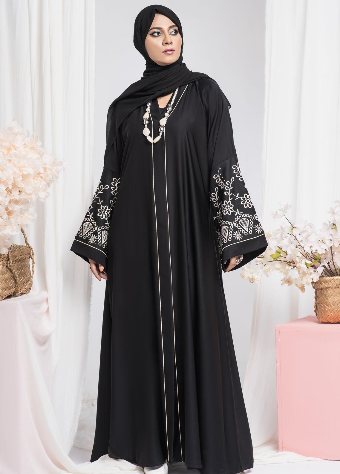 Stunning Black Stylish occasion wear abaya is designed in soft and breathable summary Nidah fabric with beautiful embroidery at sleeves with Baggy style chiffon hijab is included Fabric NIDAH Care 30 C Mild Wash Do Not Bleach Do Not Bleach Do Not Tumble Dry Cool Iron Professional DryClean