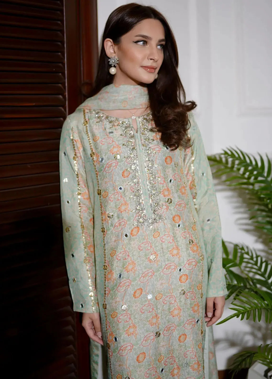 Embroidered Pret Korean Rawsilk 3 Piece Suit
