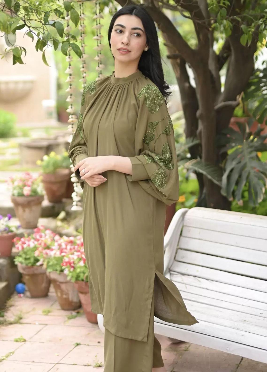 This Chic And Classy Cut On Grip Has Volumised Beaded Worked Sleeves And Paired With Culottes.