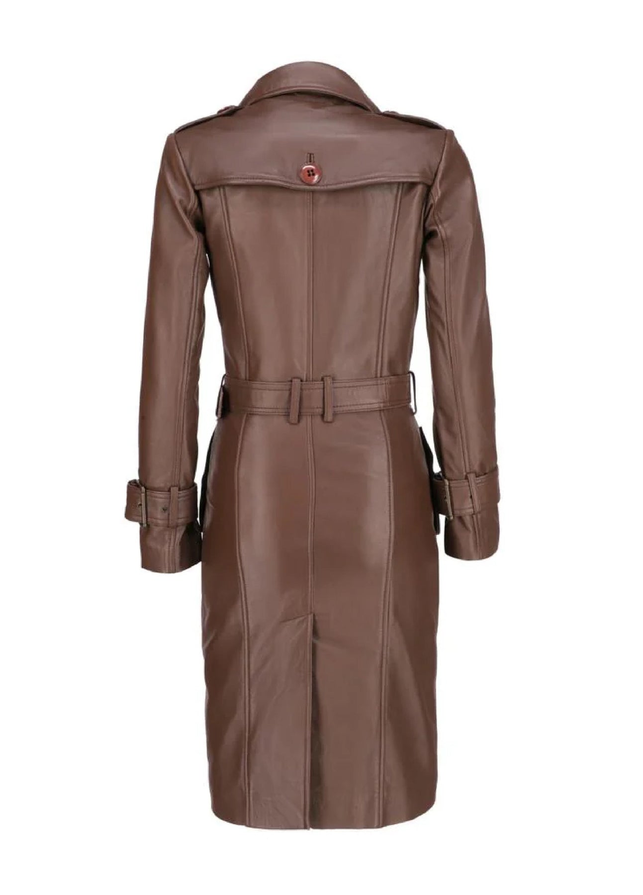 A winter coat with a hint of elegance, this double breasted leather trench coat for women with adjustable belt is made of 100% genuine leather for ultimate durability and protection. This chic, classic style ensures that you'll always stay in fashion.