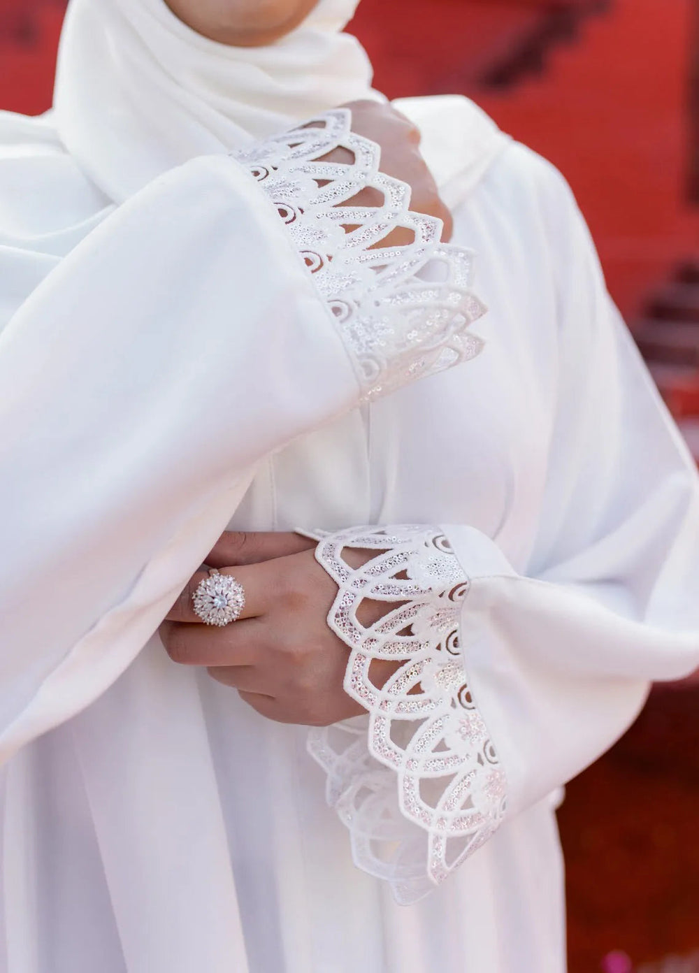La Khilaba Pret Plain Korean Nida White Laced Abaya