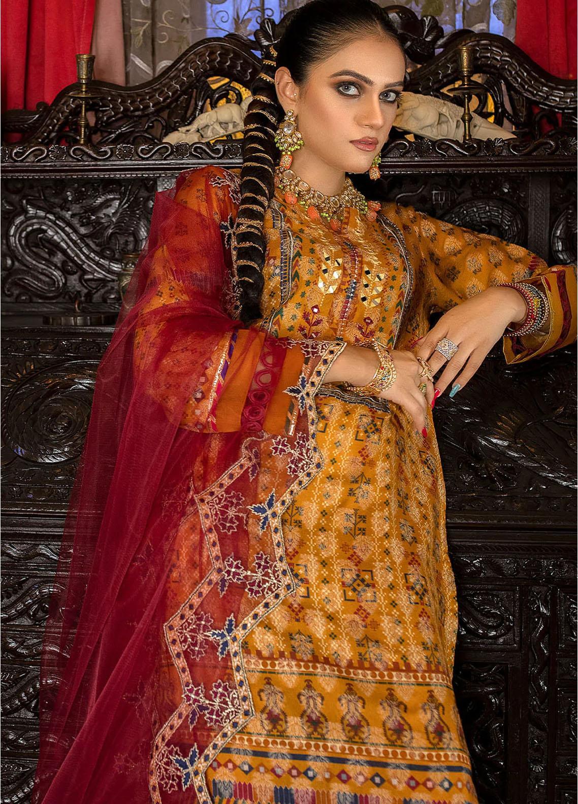 Mirror embroidered jacquard cotton shirt with lacing details on sleeves. The overall look is beautified by organza border styled with pintex and laces. mirror work on daman.
