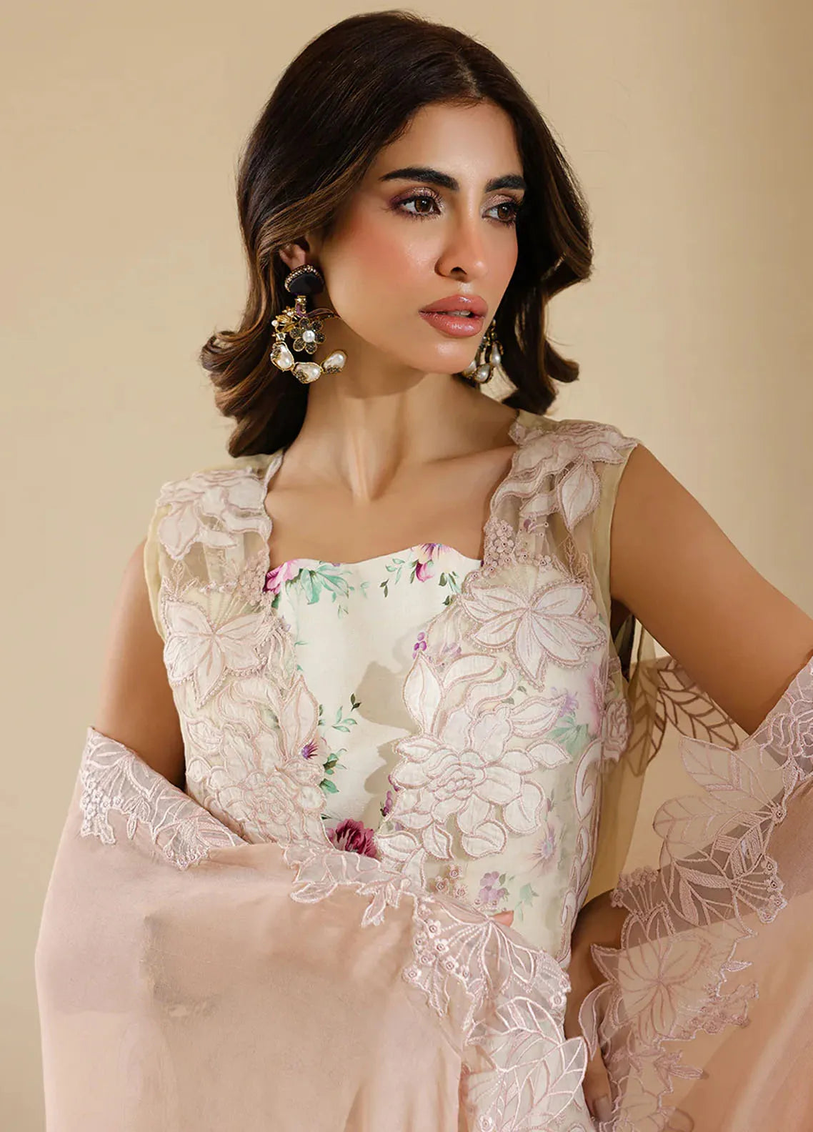 • Lazer Cut Embroidered Shirt On Organza Wider 2.25 M