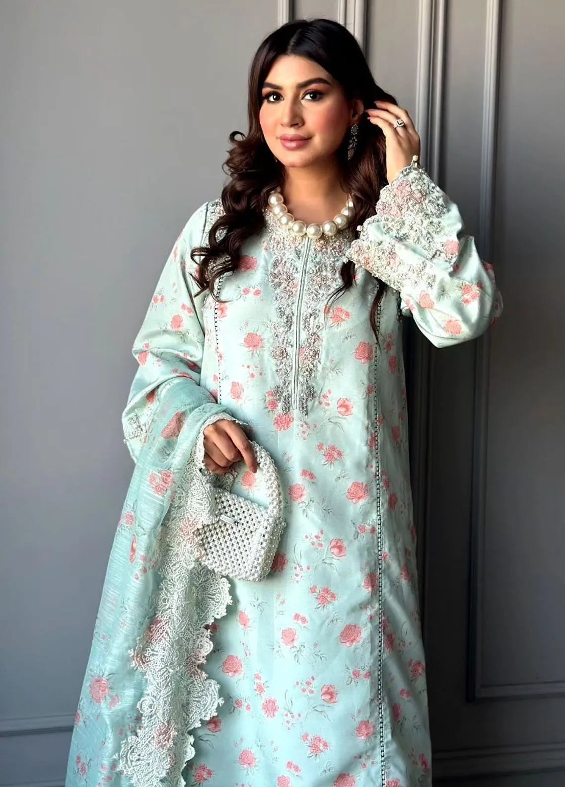 Embroidered Luxury Pret Raw Silk 3 Piece Suit