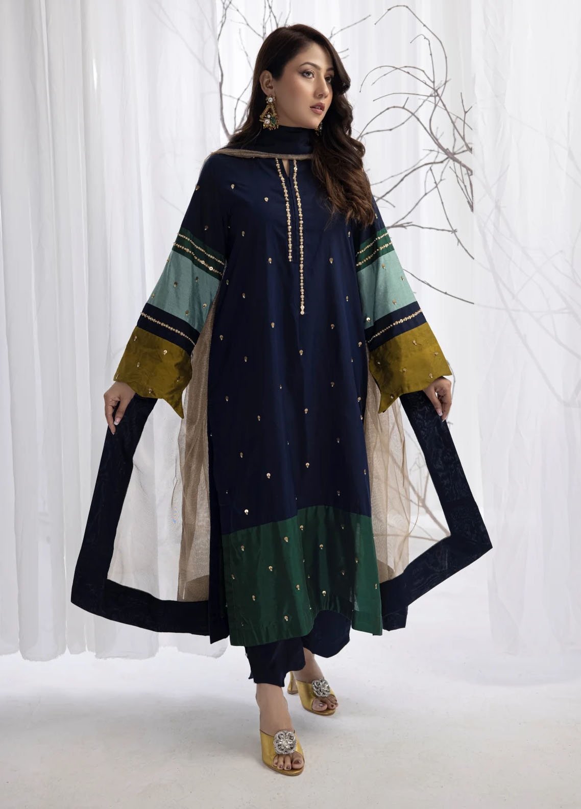 Embroidered Pret Katan silk 3 Piece