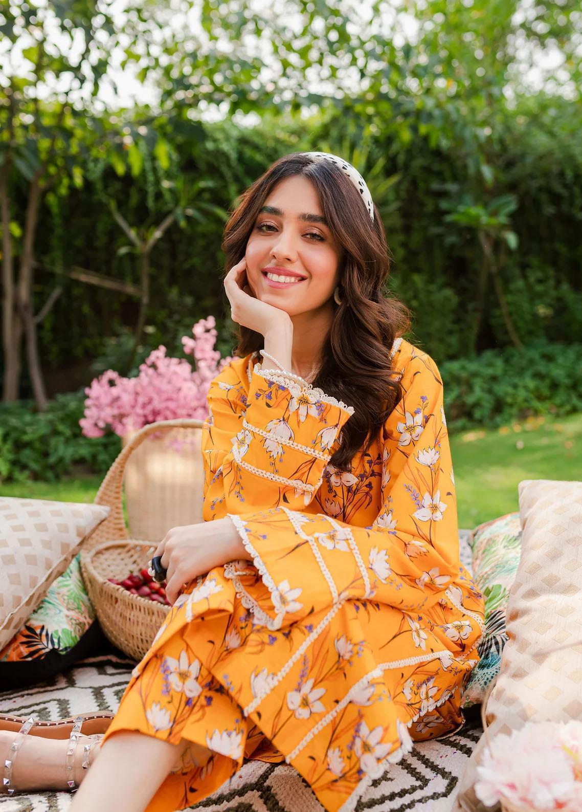 Naayas Pret Embroidered Lawn 2 Piece Suit NS23M Mango Tango