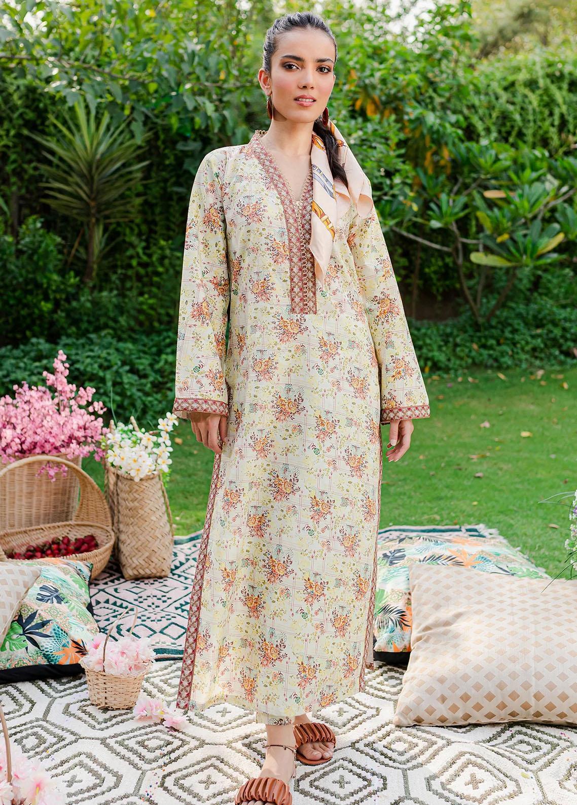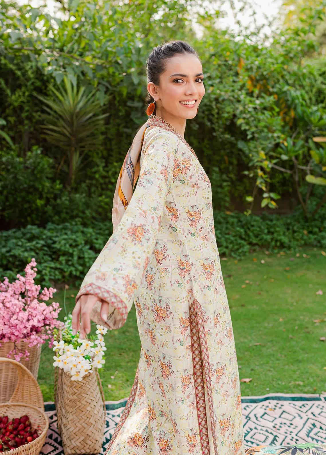 Details: Digital printed lawn shirt with matching pants with embroidered neckline, sleeves and hem details._x005F