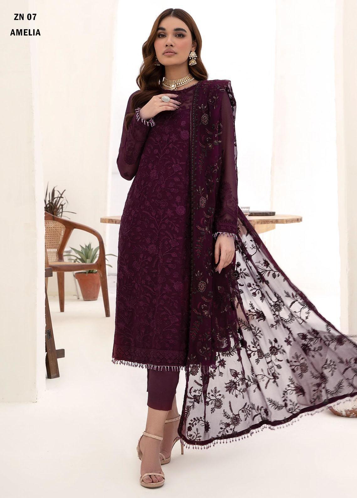 Nazneen By Zarif Embroidered Chiffon Suits Unstitched 3 Piece ZR25UF ZN 07 Amelia - Luxury Formal Collection