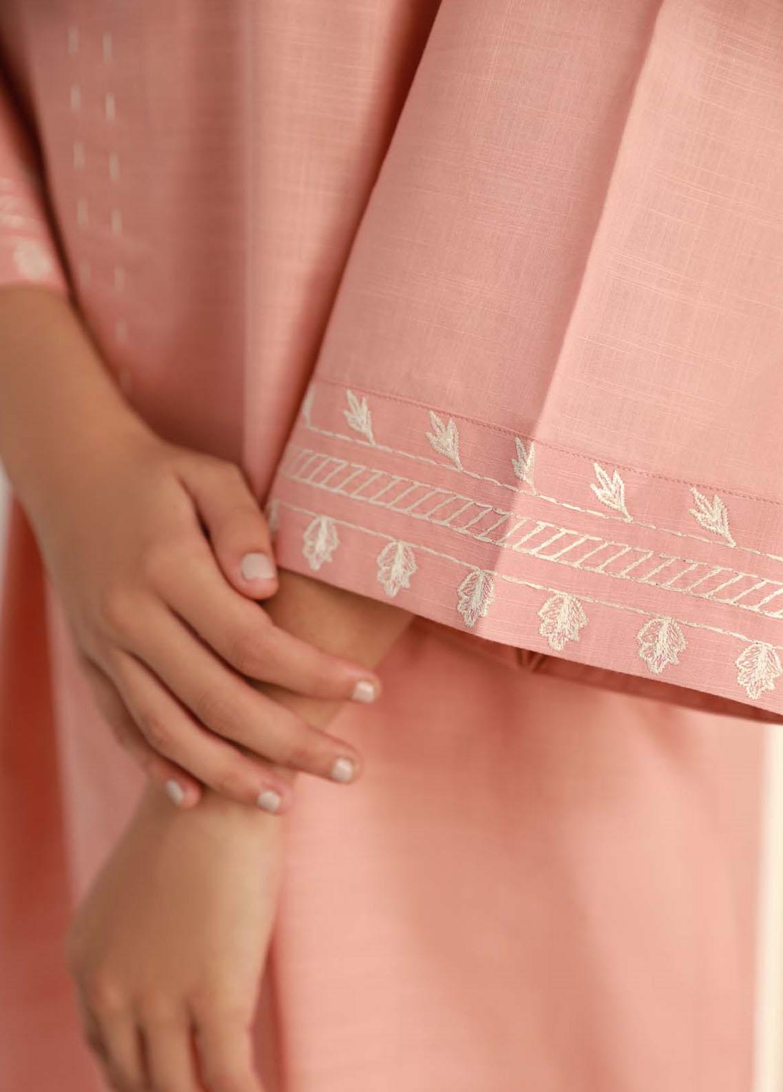 Pink Luxe is a captivating light pink colour co ord outfit Featuring stylish embroidery details along sleeves edges and embellished running stitch Paired with cuffed trousers A smart and stunning causal wardrobe choice to add to your daily wear option