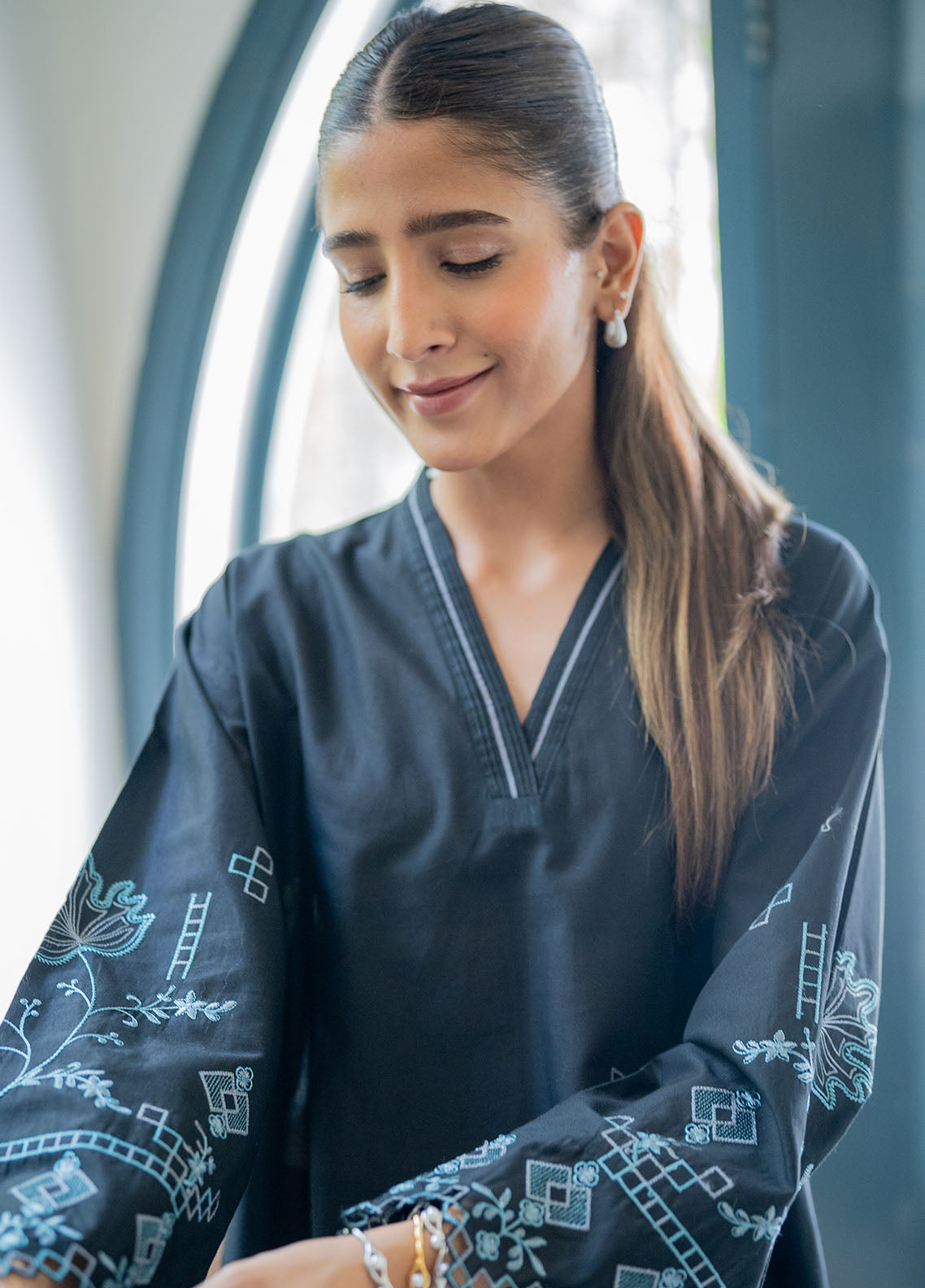 Sahar Pret Embroidered Cambric 2 Piece Suit Noir Forest