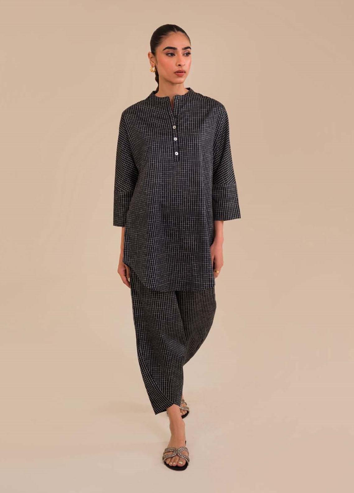 Onyx depicts a fashionable yet smart casual design co ord outfit for day to day wear Featuring a black and white crosshatch pattern a trendy kameez with a round daman with a smartly stitched straight cut design paired with a chic style shalwar Your perfect wardrobe essentials for this season