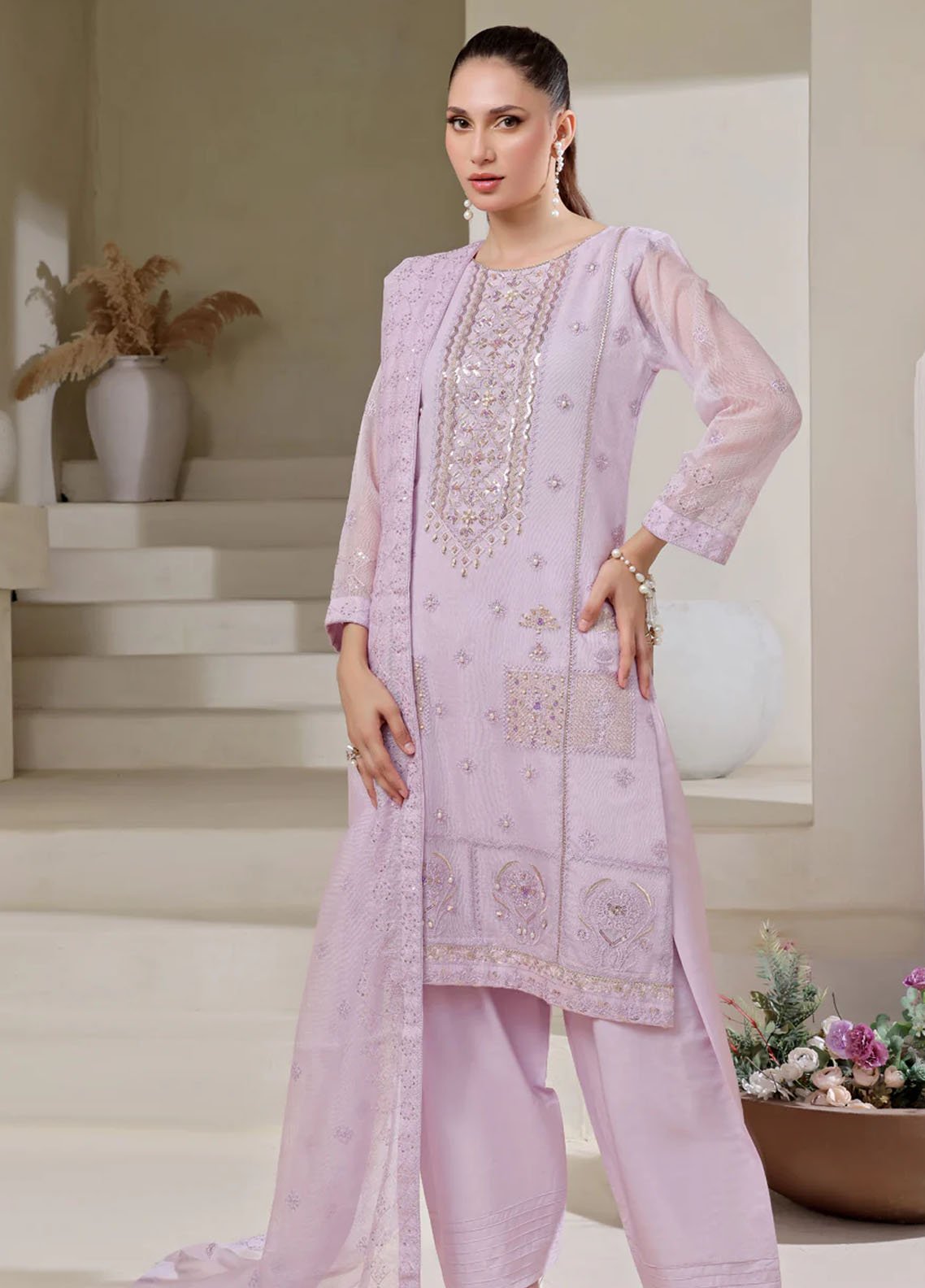 Embroidered Pret Cotton Net 3 Piece Suit
