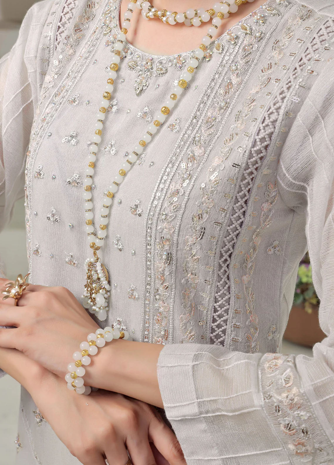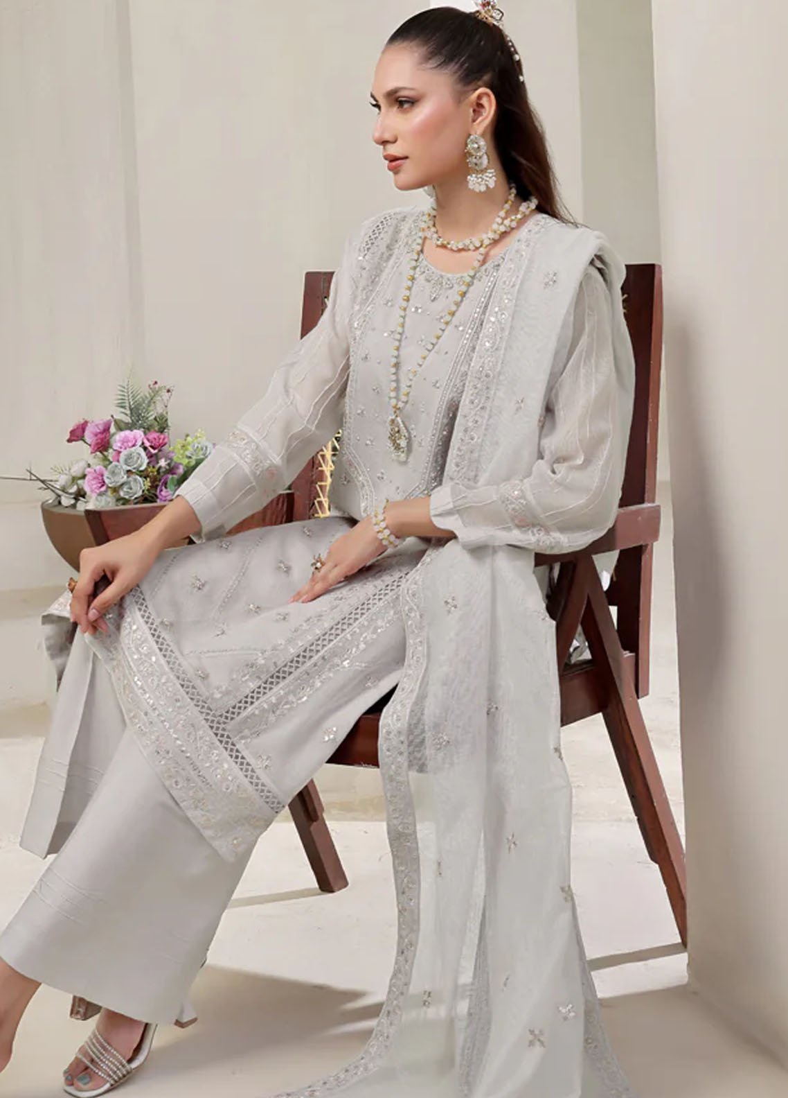 Embroidered Pret Cotton Net 3 Piece Suit