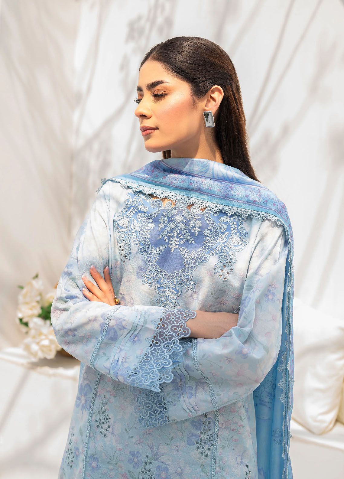 • Chikan Kari Embroidered Sleeves Border