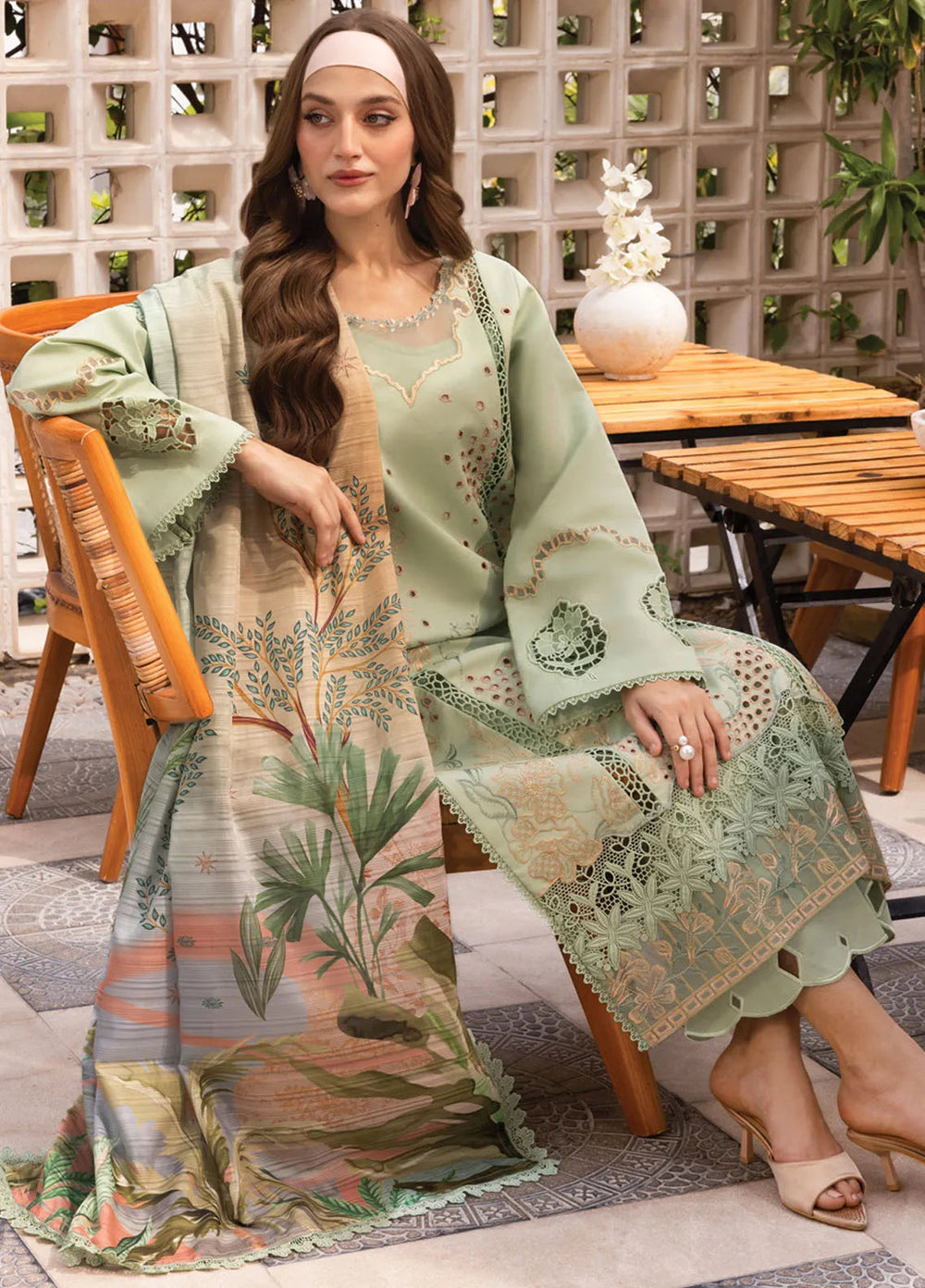 Aymal by Alizeh Fashion Embroidered Chiffon Suits Unstitched 3 Piece AFB25BC D-03 Jade - Luxury Collection