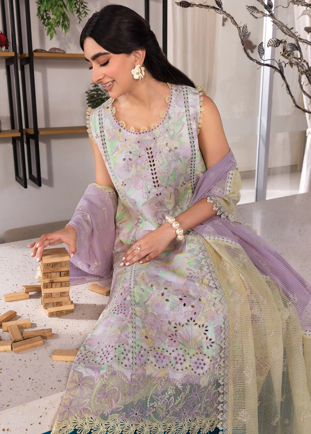Summer Lines by Neeshay Embroidered Lawn Suits Unstitched 3 Piece NSH25SL Lilac Mist - Summer Collection