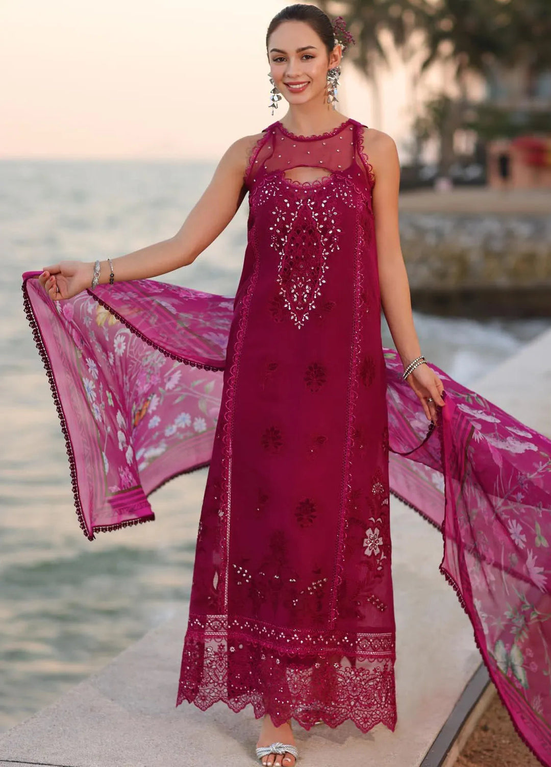 Wes by Farah Talib Embroidered Lawn Suits Unstitched 3 Piece FTA25WL FTA-03 Prciscilla Pink - Luxury Collection