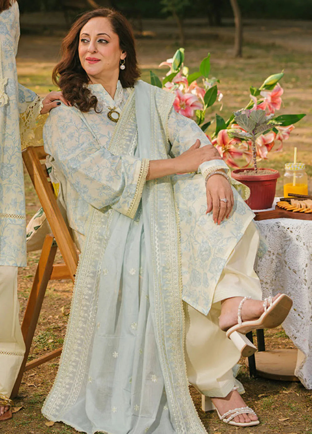 Elaf Chikankari Lawn Suits Unstitched 3 Piece EF25PC ELK-08B Azzurro - Summer Collection