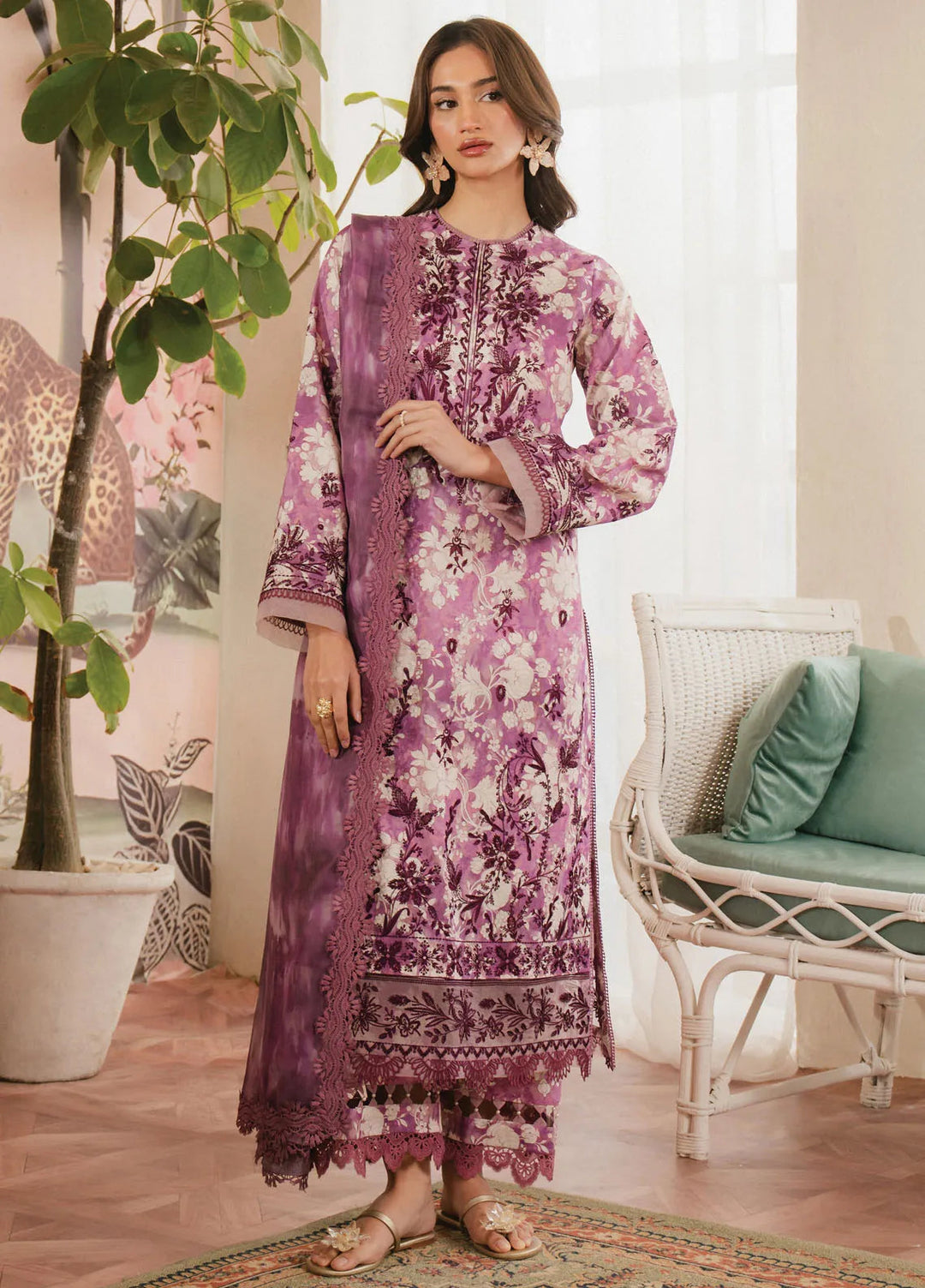 Niran by Xenia Embroidered Chiffon Suits Unstitched 3 Piece XE25N D-02 Verdura - Formals Collection