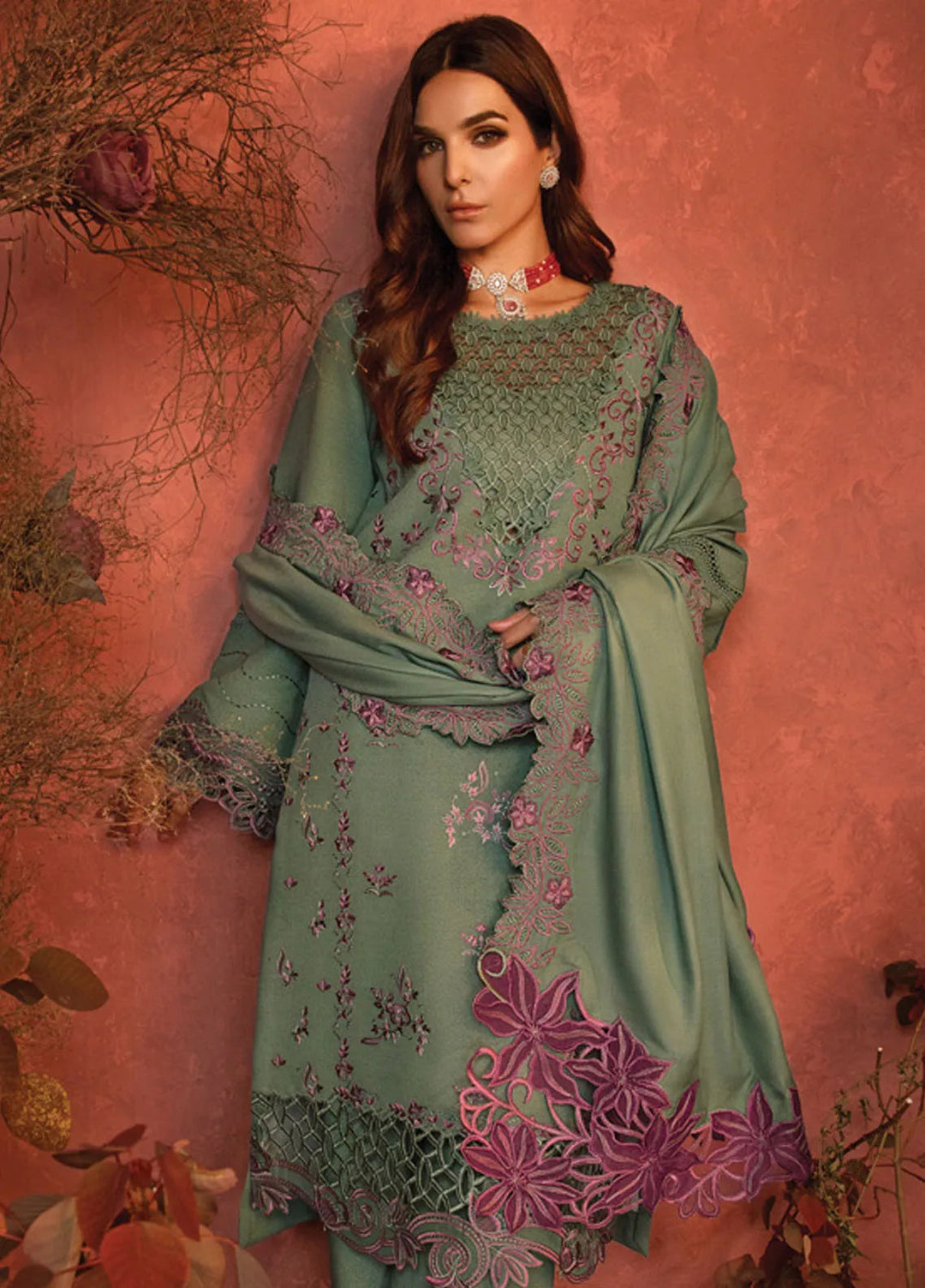 Alaia by Muraad Pret Embroidered Alpine Peach 2 Piece Suit Oriana