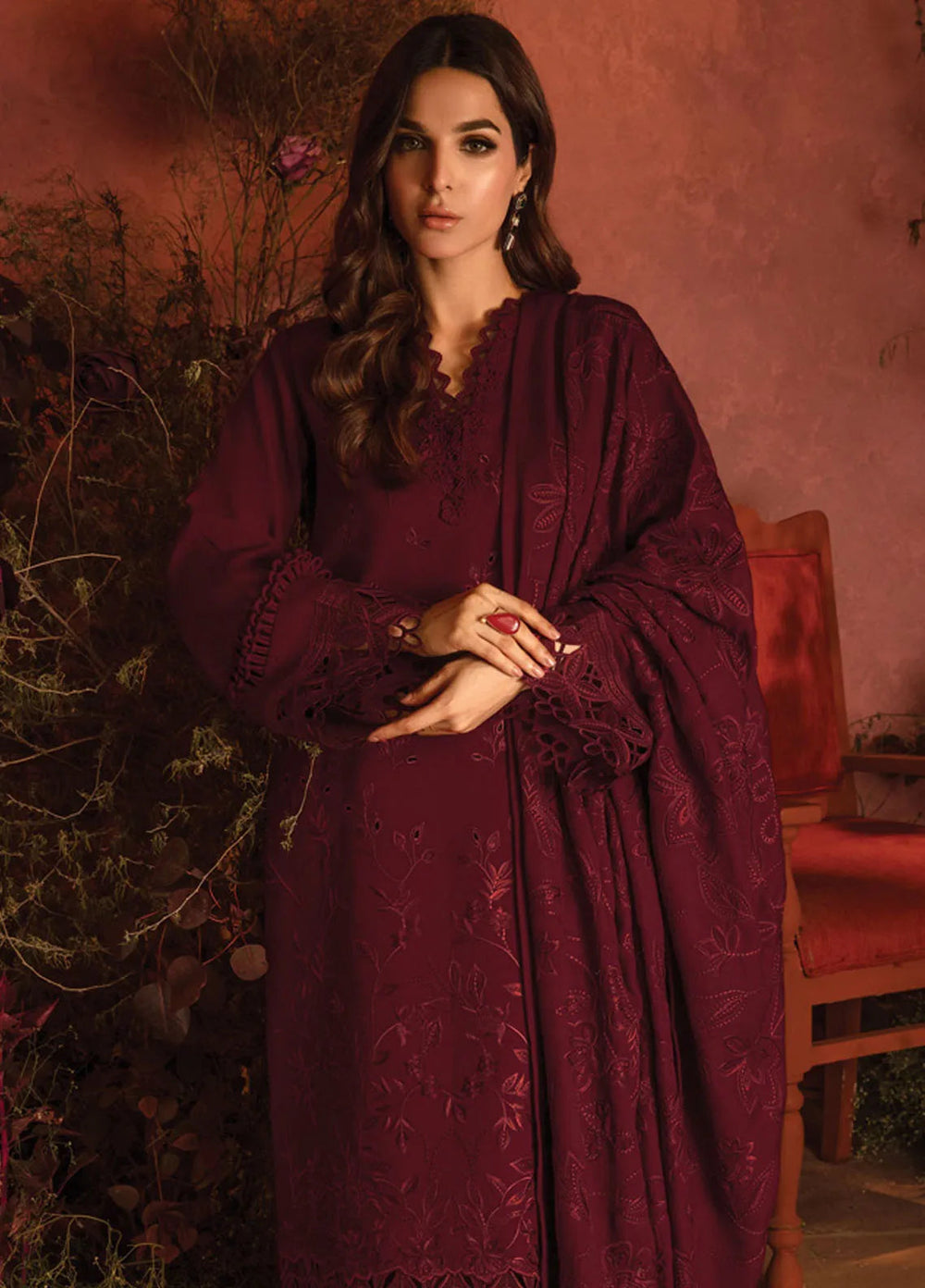 Celeste by Gulaal Embroidered Velvet Suit Unstitched 3 Piece GL-UV-24-08 Sangria - Formal Collection