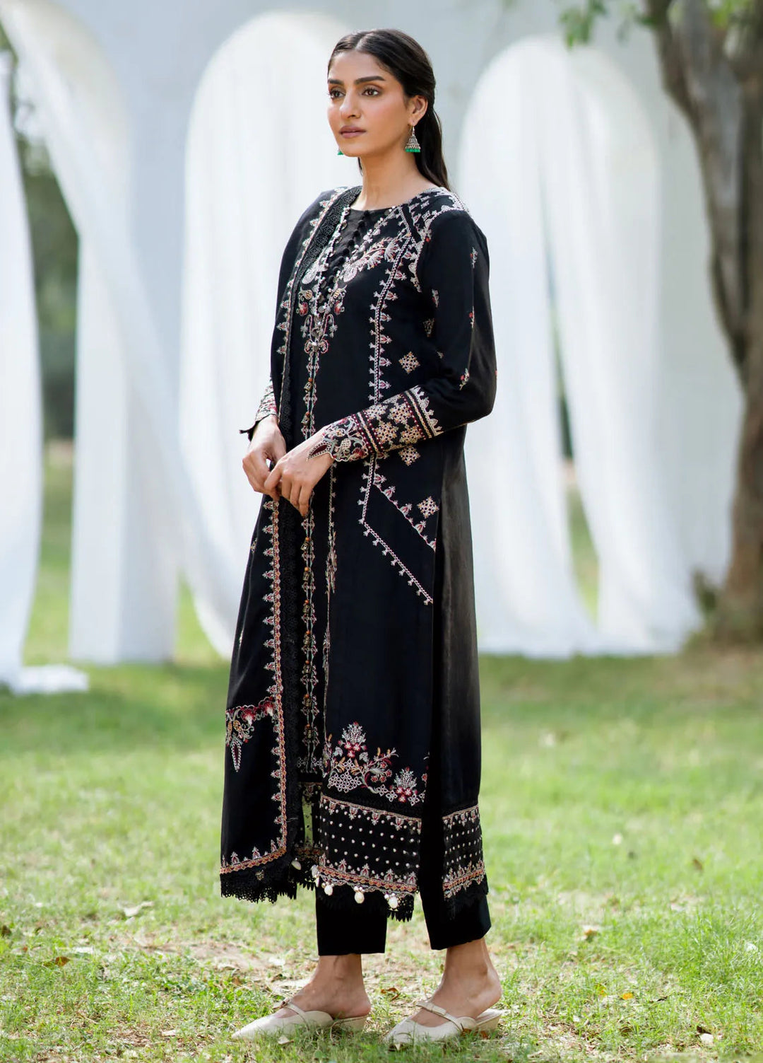 Dhoop Kinaray by Xenia Embroidered Khaddar Suit Unstitched 3 Piece D-03 Siyah - Winter Collection