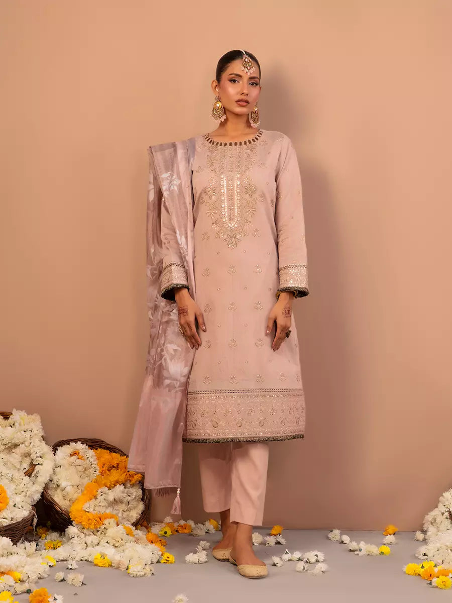 Cross Stitch Unstitched RTS Marina Embroidered Suits 3 Piece CS25MW D-01 Mauve Mist - Winter Collection