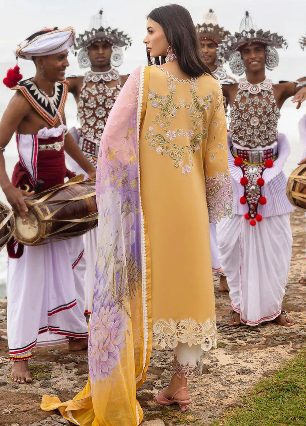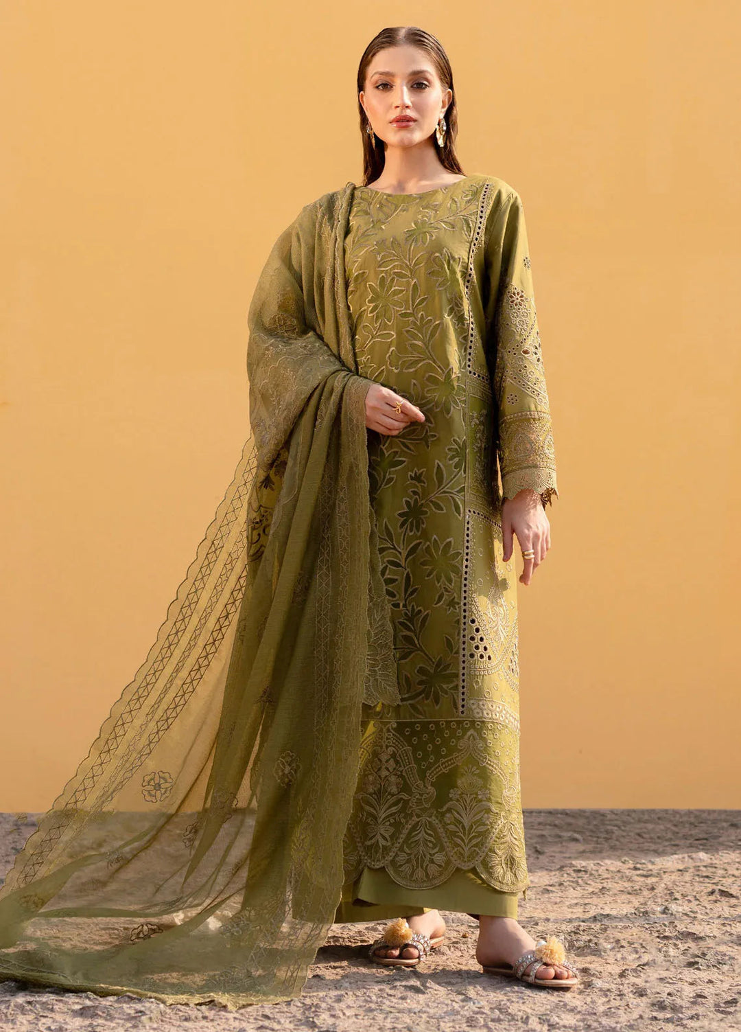 Manaram by Mushq Embroidered Lawn Suit Unstitched 3 Piece MQ25ML D-211 Gold Glow - Summer Collection
