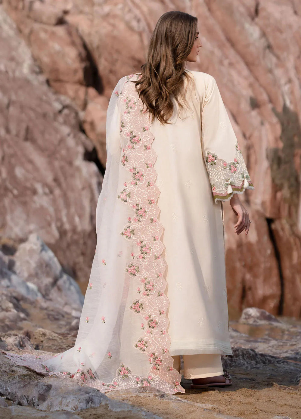 Luxe by Azure Embroidered Chiffon Suits Unstitched 3 Piece AZU25ED3 Celestial Cream - Festive Collection