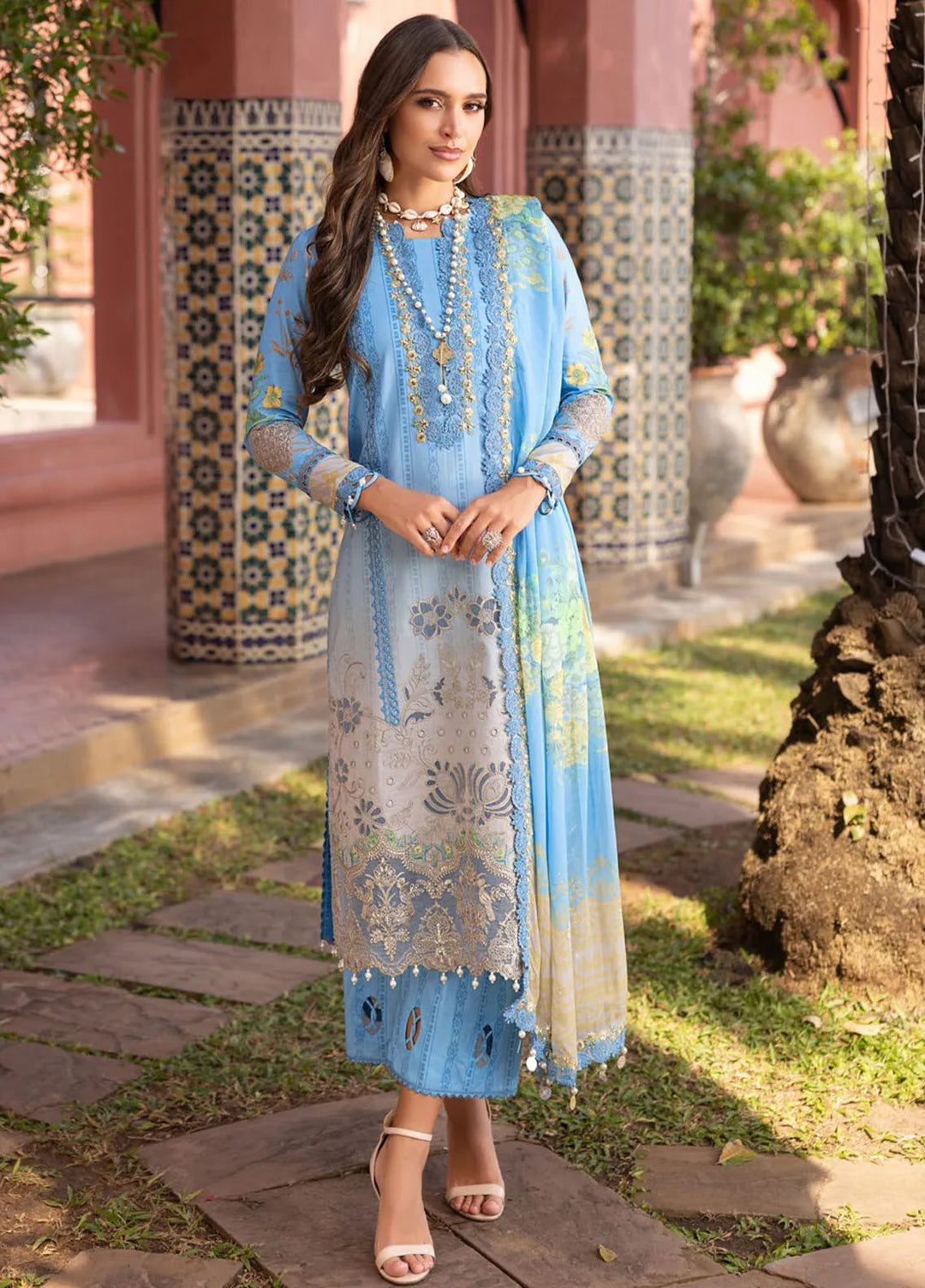 Sirene by Mahnur Embroidered Lawn Suit Unstitched 3 Piece MN25L D-10 Azure - Summer Collection