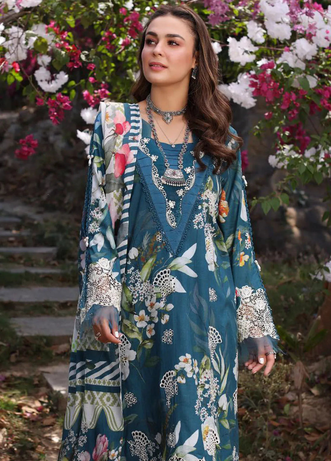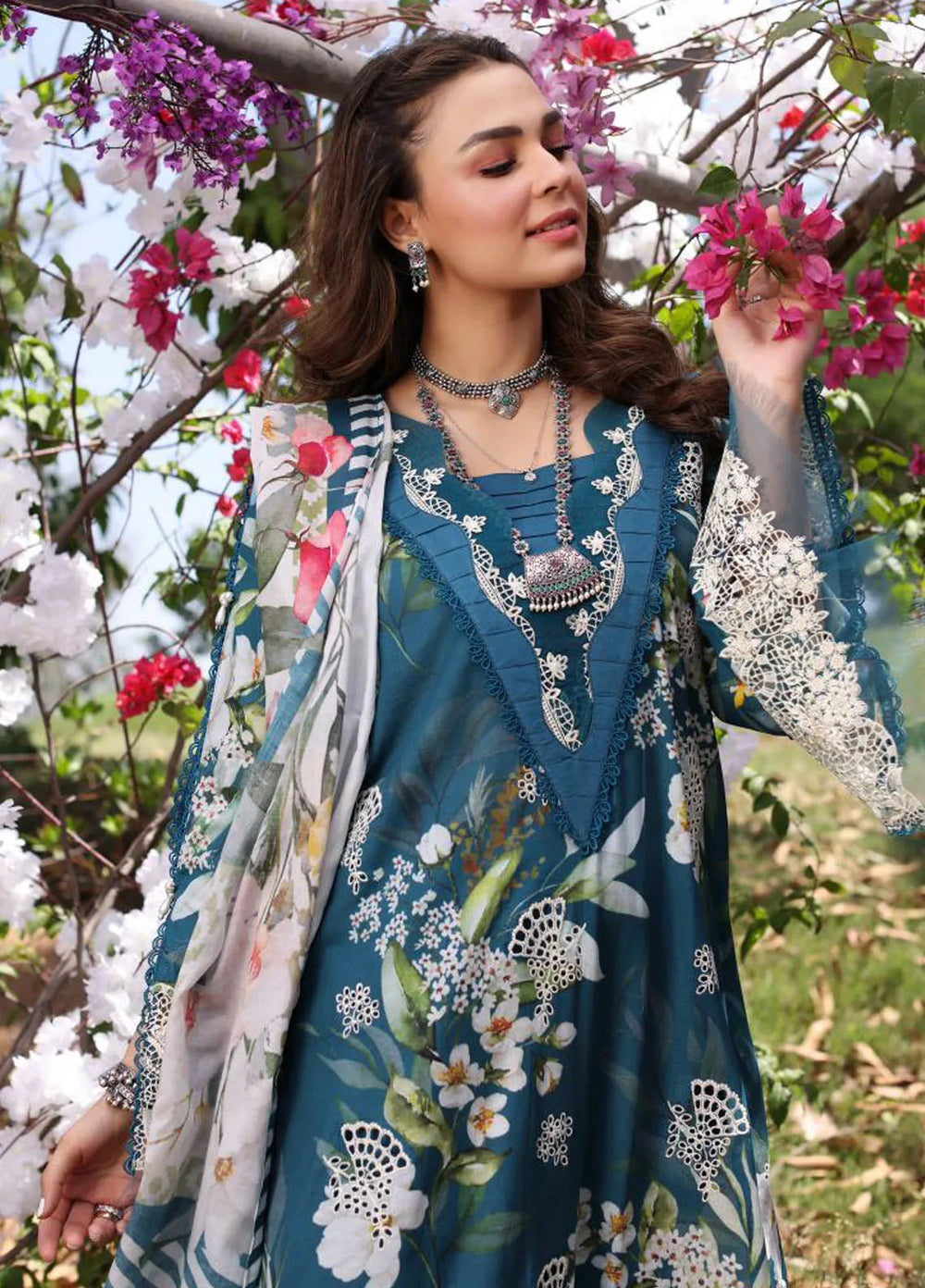 Elaf Chikankari Lawn Suit Unstitched 3 Piece EF24C ECK-04 A Ocean Blossoms - Summer Collection