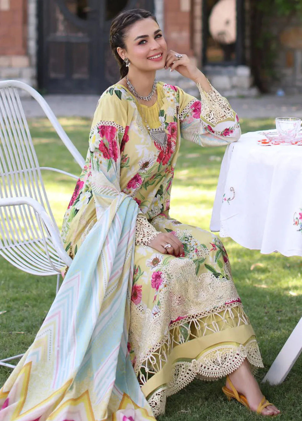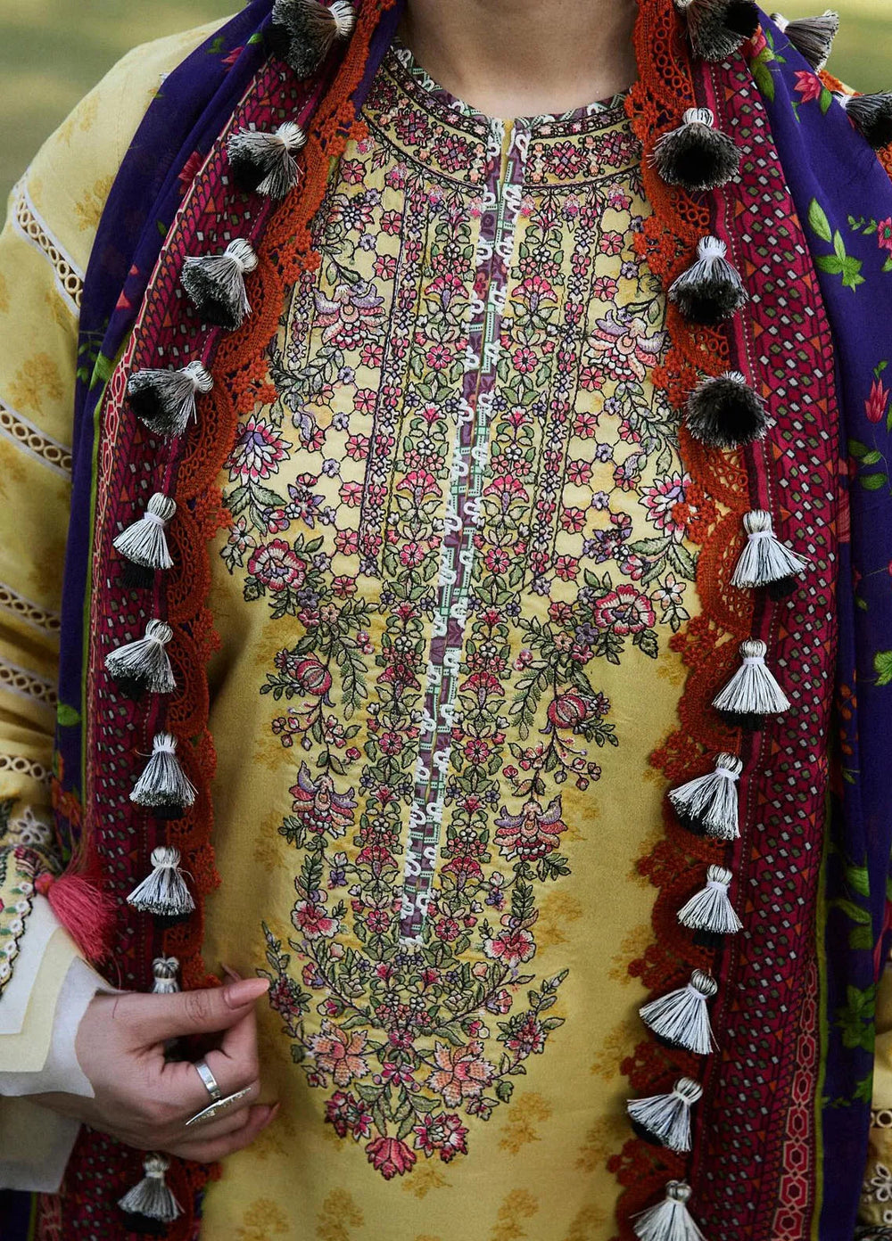 Elaf Chikankari Lawn Suit Unstitched 3 Piece EF24C ECK-05 A Citrus Crush - Summer Collection
