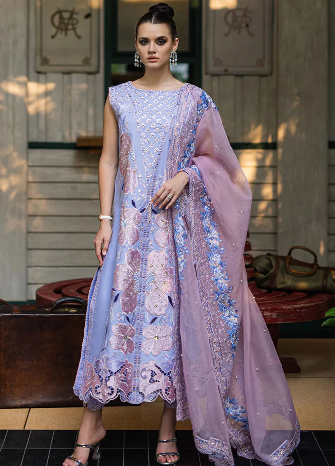 Dastoor By Farasha Embroidered Lawn Suit Unstitched 3 Piece FSH24E D6-Dainty Lilac - Summer Collection
