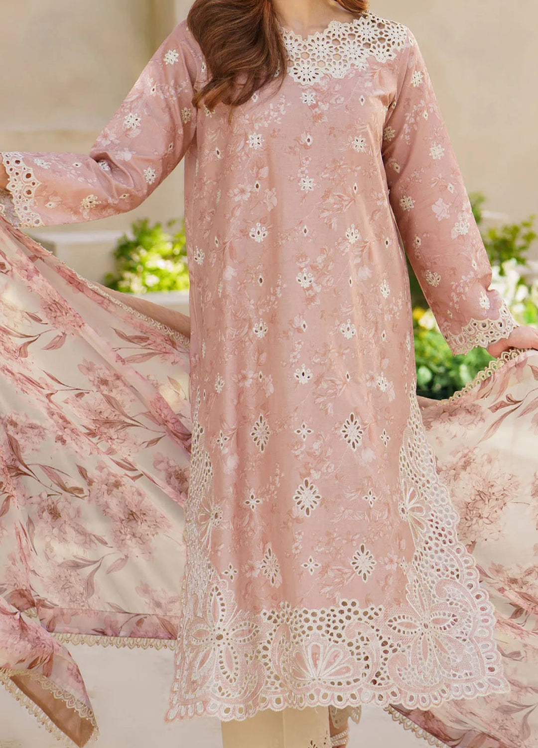 Alif Affordable by Ajr Embroidered Lawn Suit Unstitched 3 Piece AJR24AA AFL-07 Coral Blush - Summer Collection