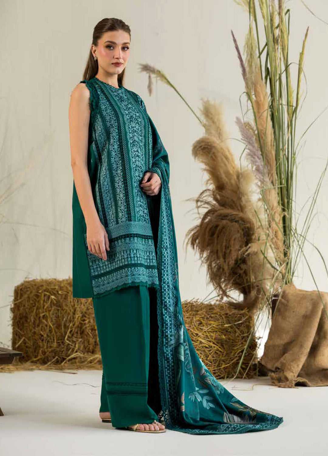 Cross Stitch Unstitched RTS Marina Embroidered Suits 3 Piece CS25MW D-09 Shadow Teal - Winter Collection
