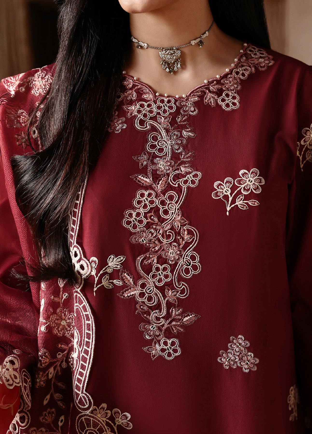 Cross Stitch Unstitched Embroidered Premium Lawn 3 Piece Suit CS26UCPL D1 CRIMSON DRAPE - Eid Collection