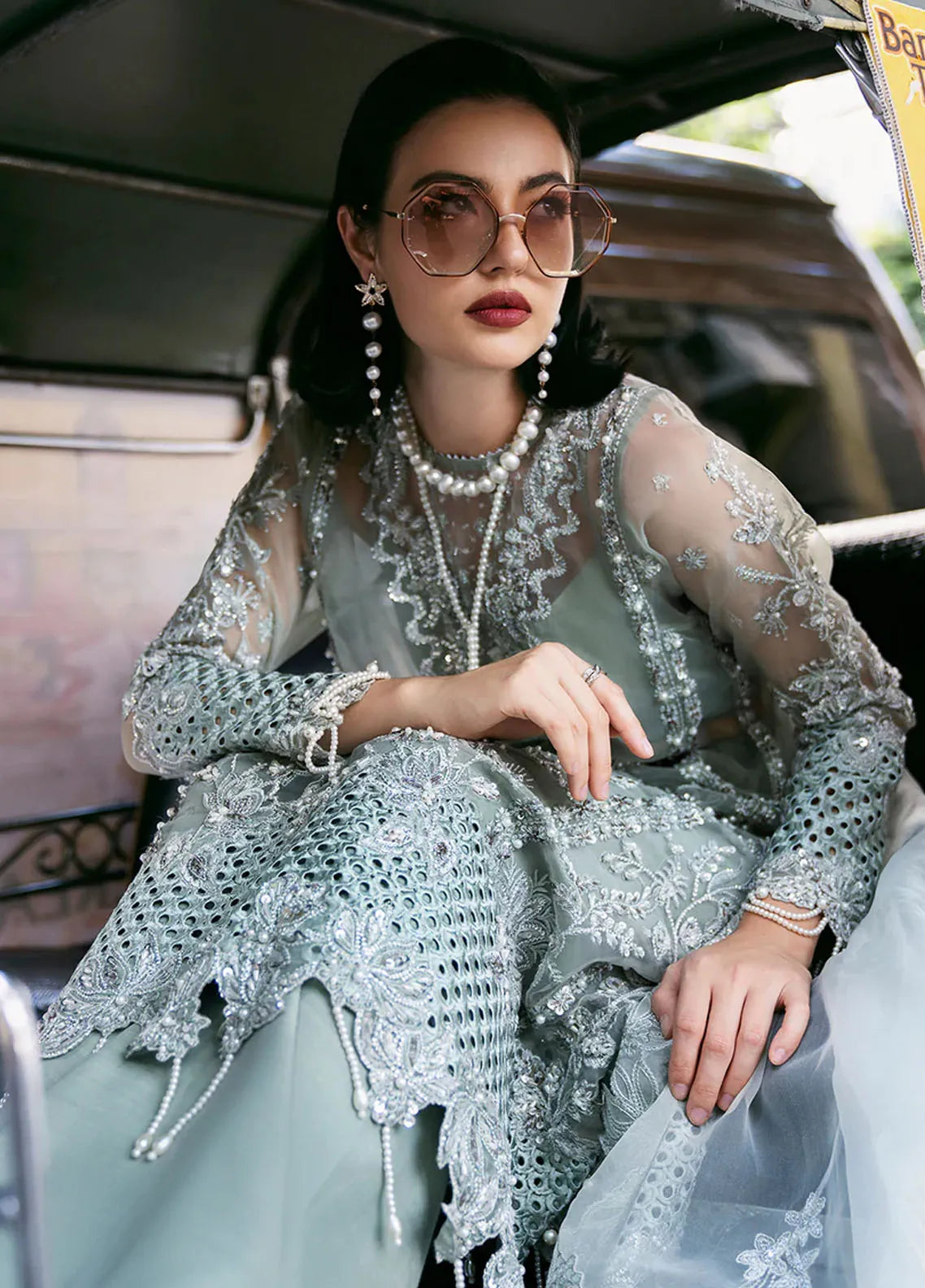 • Hand Embellished Front Right Panel On Organza 2 Piece