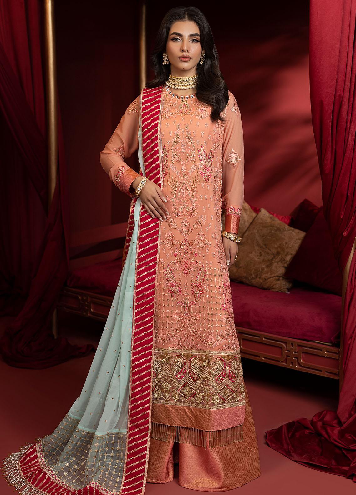 Khawab Deeda By Sahane Embroidered Chiffon Suits Unstitched 4 Piece SNE23KD KD-1102 Azalea - Formal Collection
