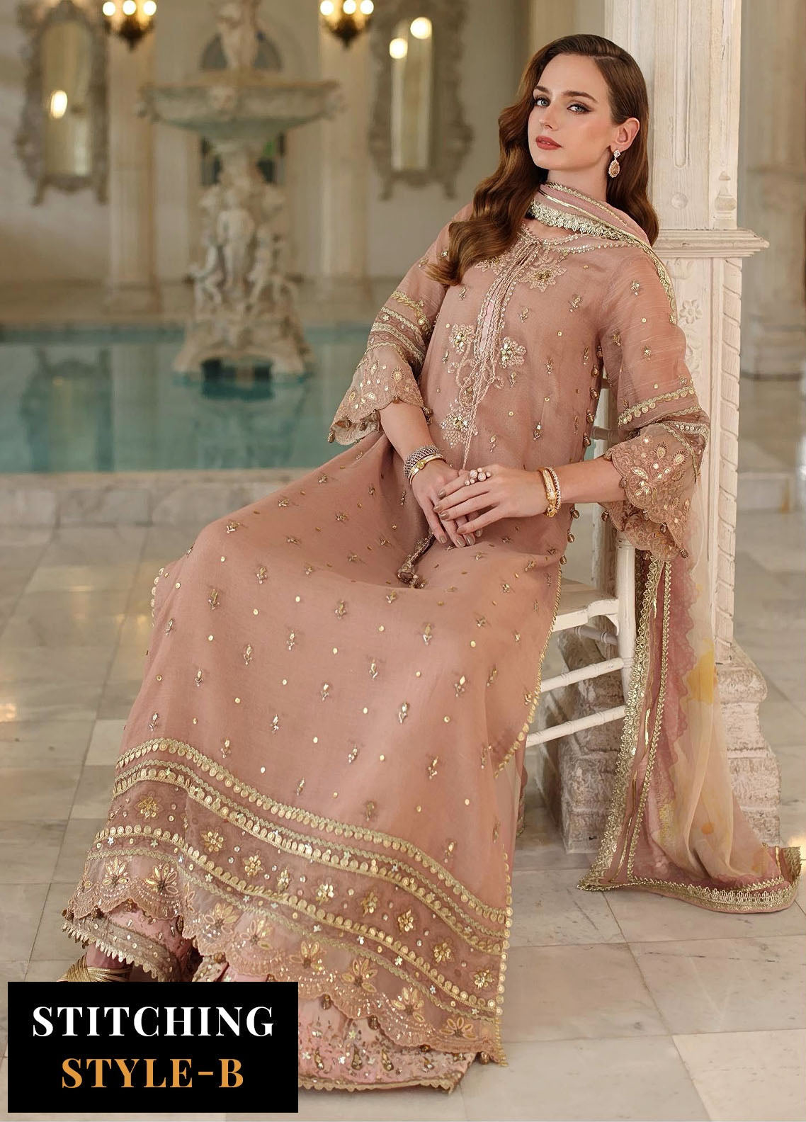 Embroidered hand worked neckline