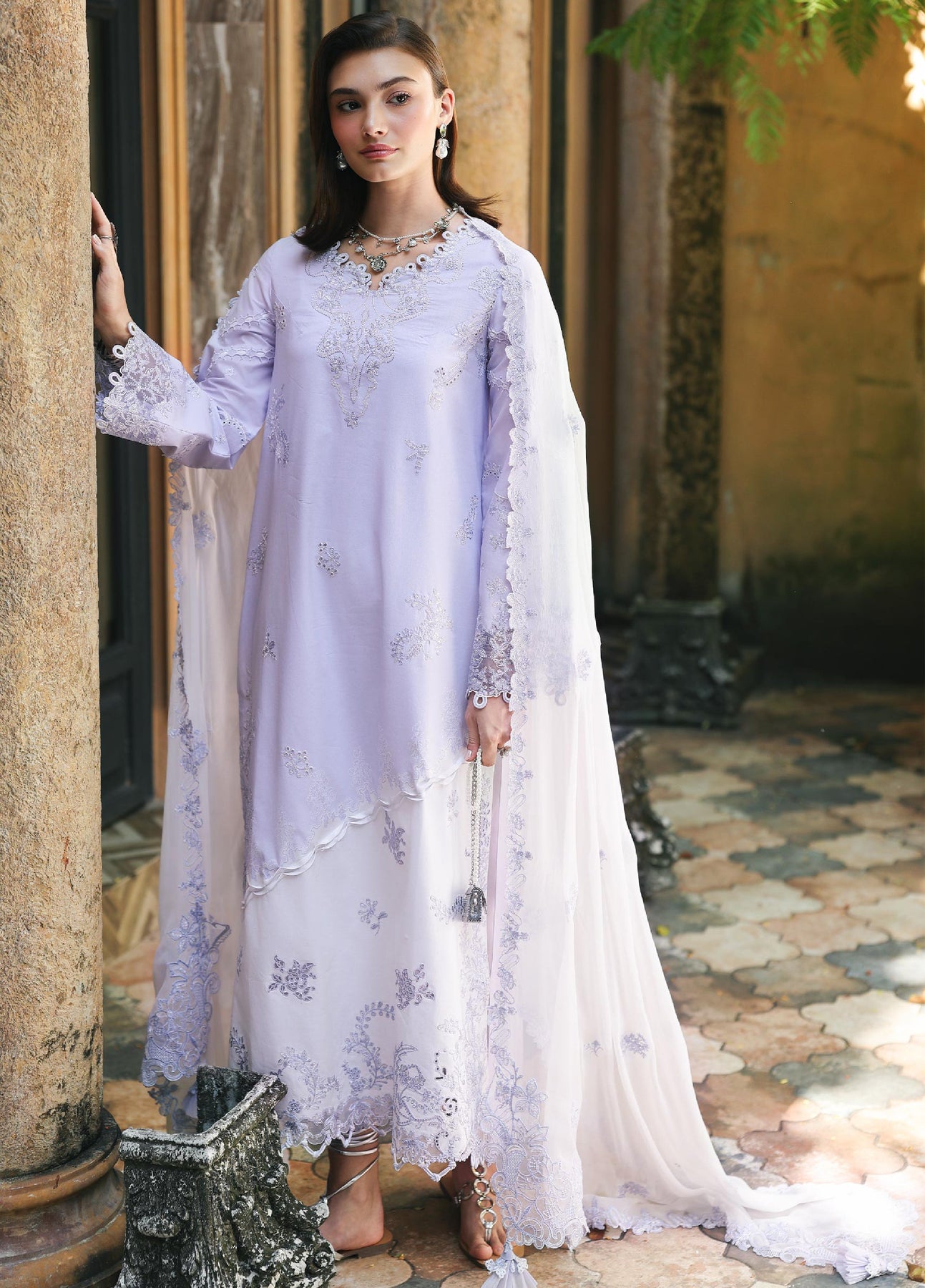 • Chikankari Embroidered Border