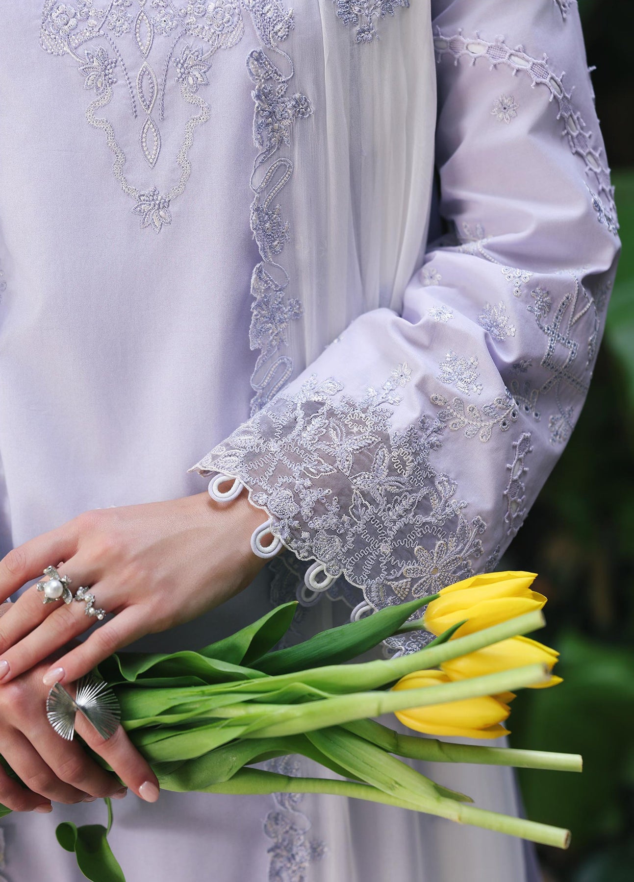 • Chikankari Embroidered Sleeves
