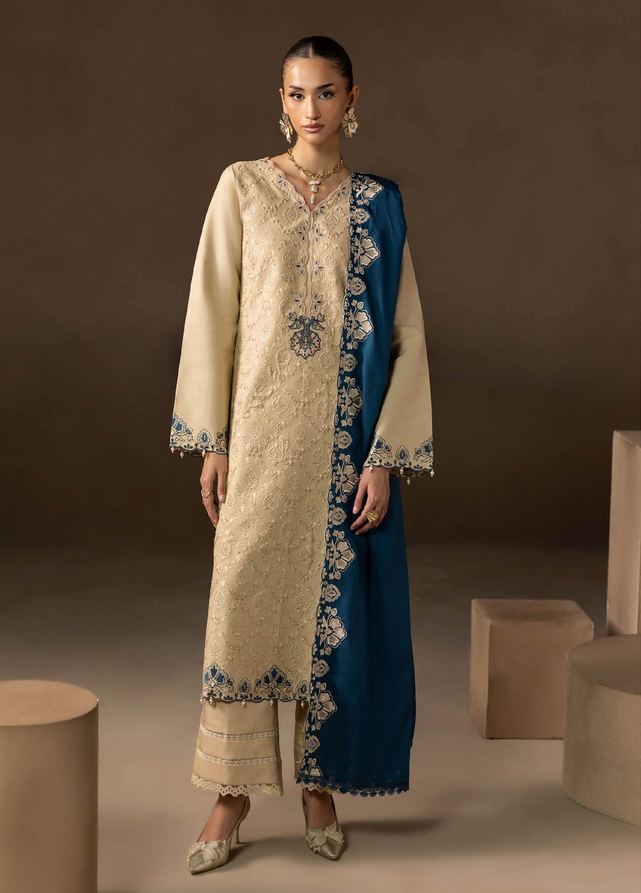 Sareen by Rajbari Unstitched Premium Viscose Chikankari 3 Piece RB25SC D-06 - Winter Collection