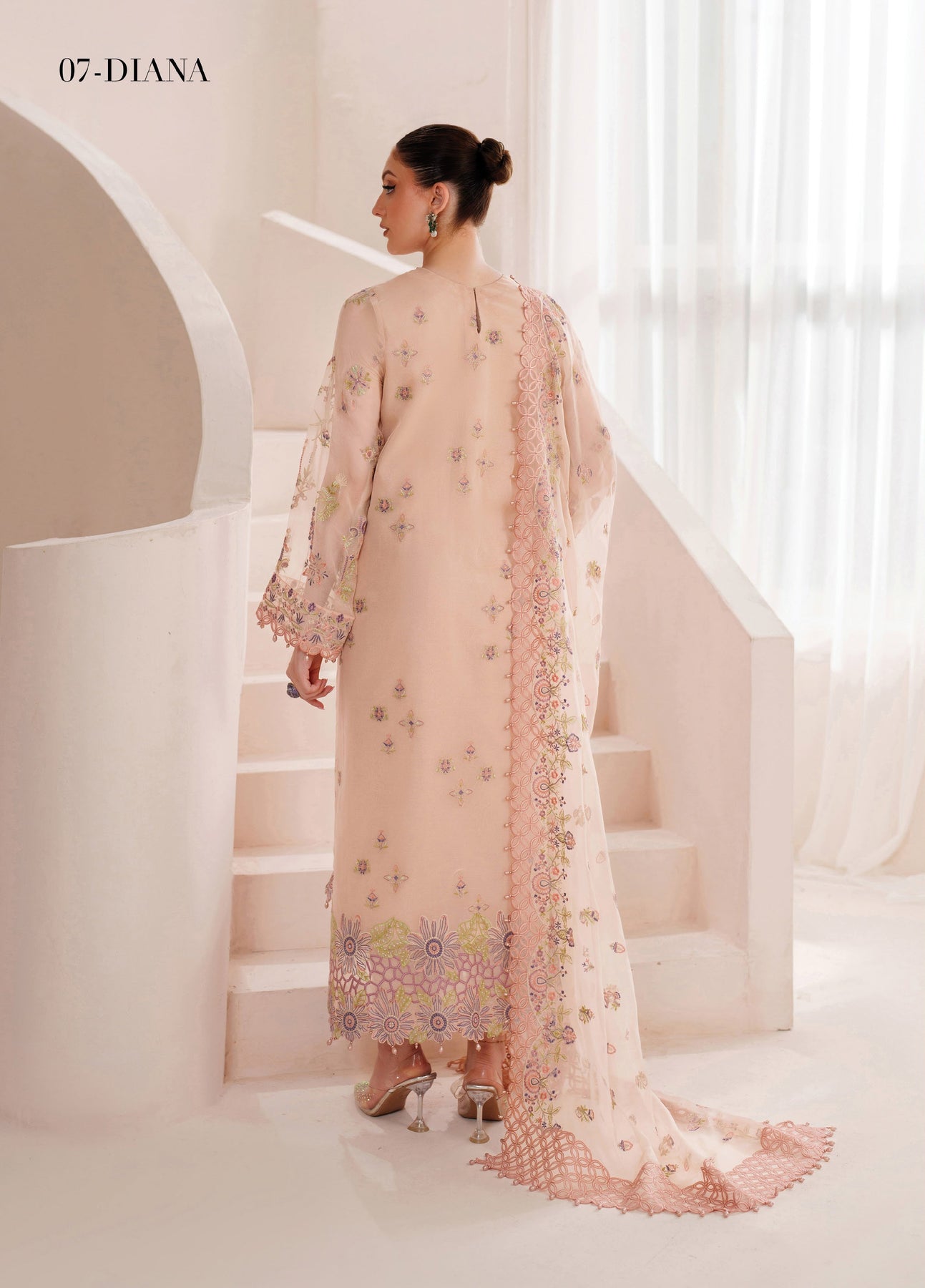 - Embroidered Front + Back Border (Organza)
