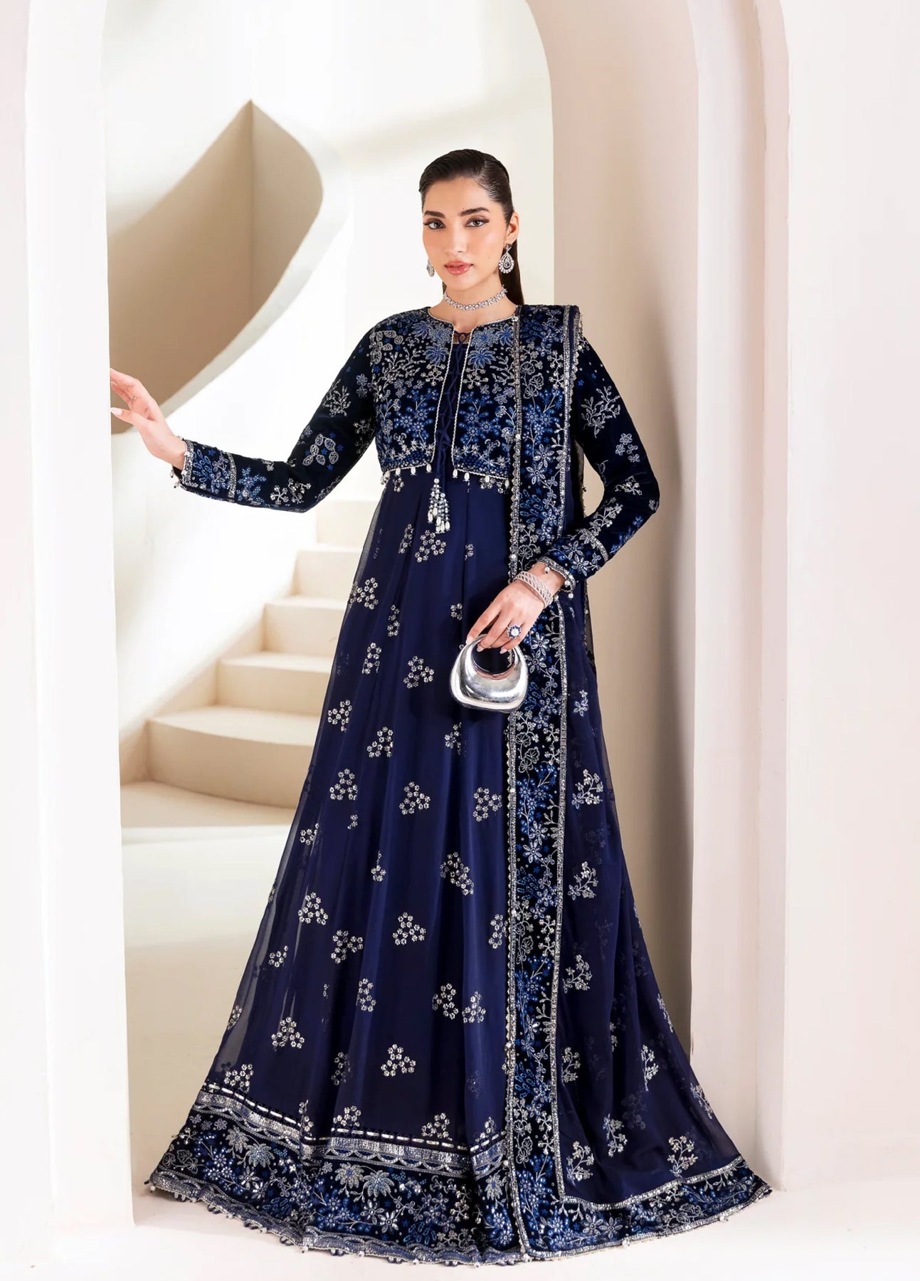 Xenia Formal Luxury Unstitched Embroidered Chiffon Suits 3 Piece XE25FL XF-1067 Maklina - Formals Collection