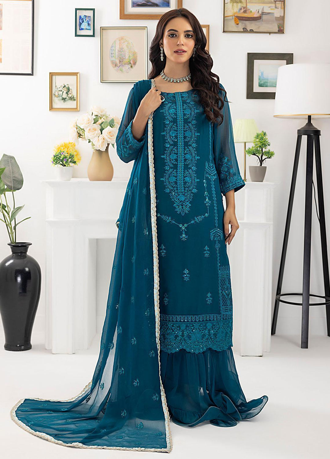 Khawab Deeda By Sahane Embroidered Chiffon Suits Unstitched 4 Piece SNE23KD KD-1108 Jewel - Formal Collection