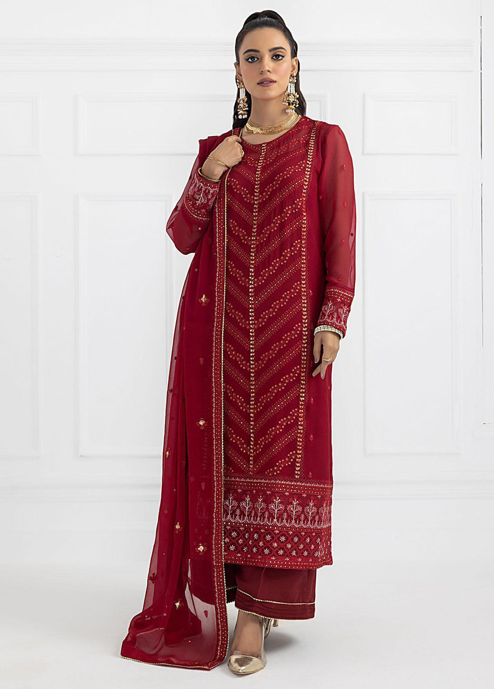 Khawab Deeda By Sahane Embroidered Chiffon Suits Unstitched 4 Piece SNE23KD KD-1105 Crimson - Formal Collection